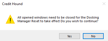3. You will see the below message appear. Please click Yes. This will reset the layout of the manual chase screen to the default, and will close all windows within the application.
