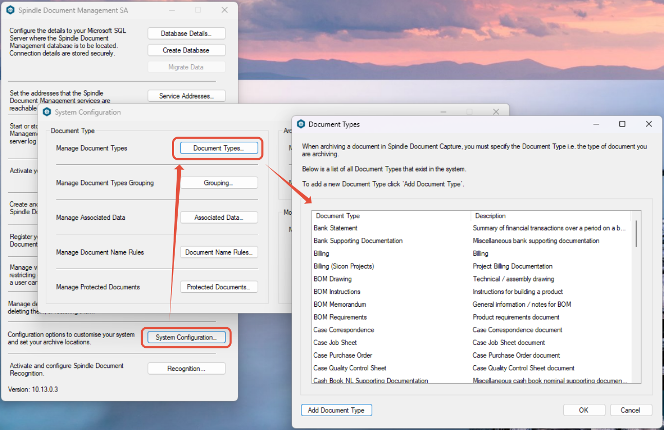 Spindle Document Capture ships with a number of pre-configured document types. However if you need to archive a specific document type that is not shipped, you can add a custom document type.