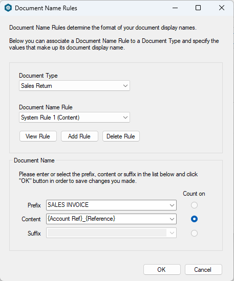 Click Document Name Rules and locate the new document type: