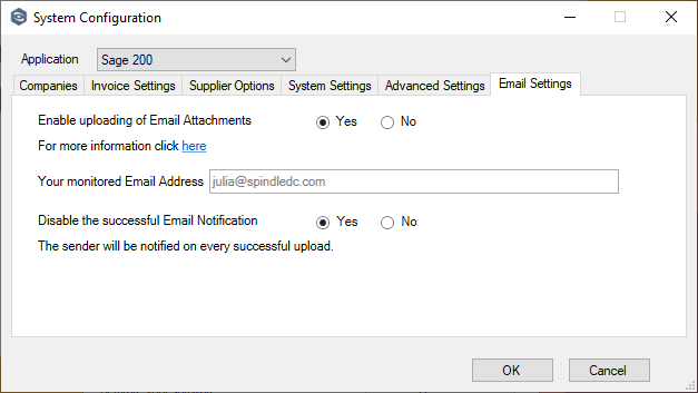 Spindle Purchase Invoice Recognition has functionality that allows a User to send invoices for recognition by forwarding the received email plus invoice attachment to a dedicated email address.