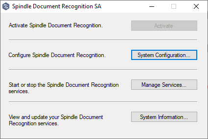3. In the Spindle Document Recognition SA Tool select System Configuration :